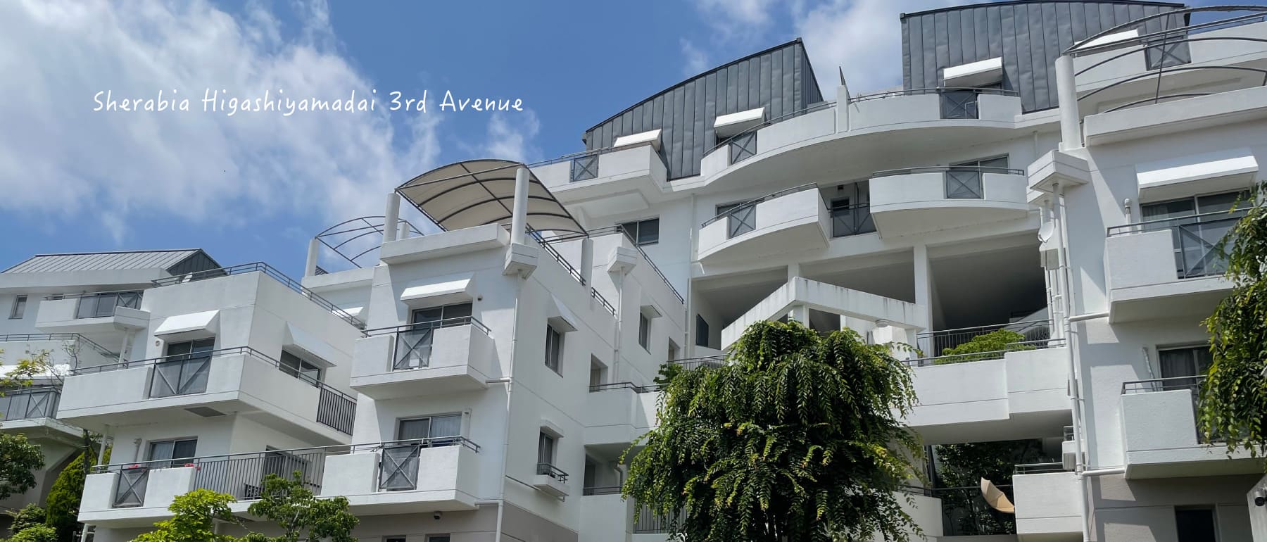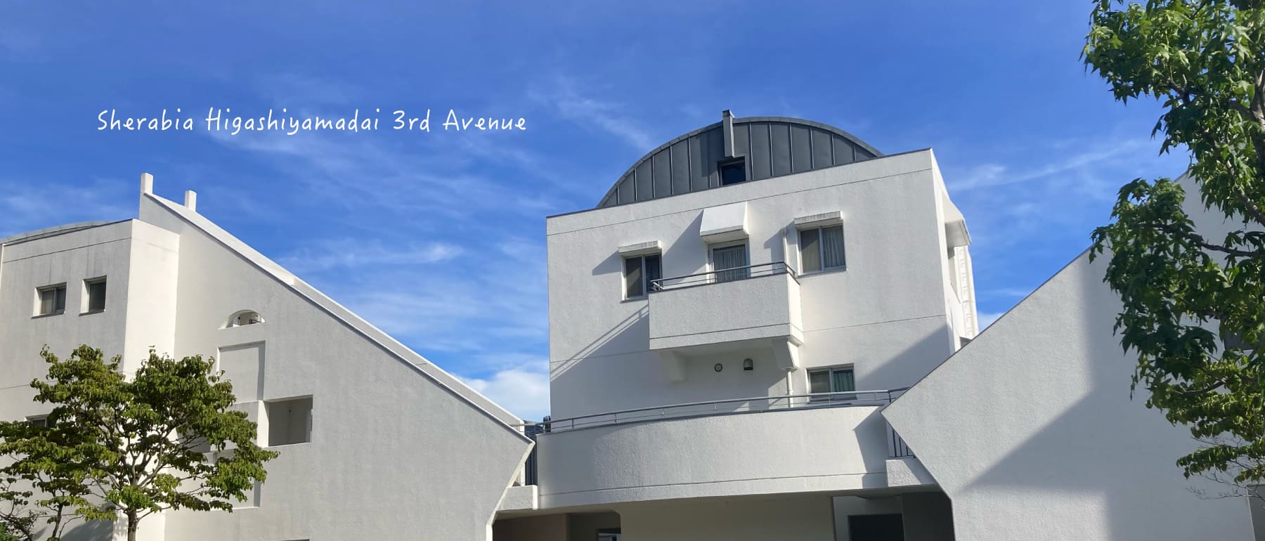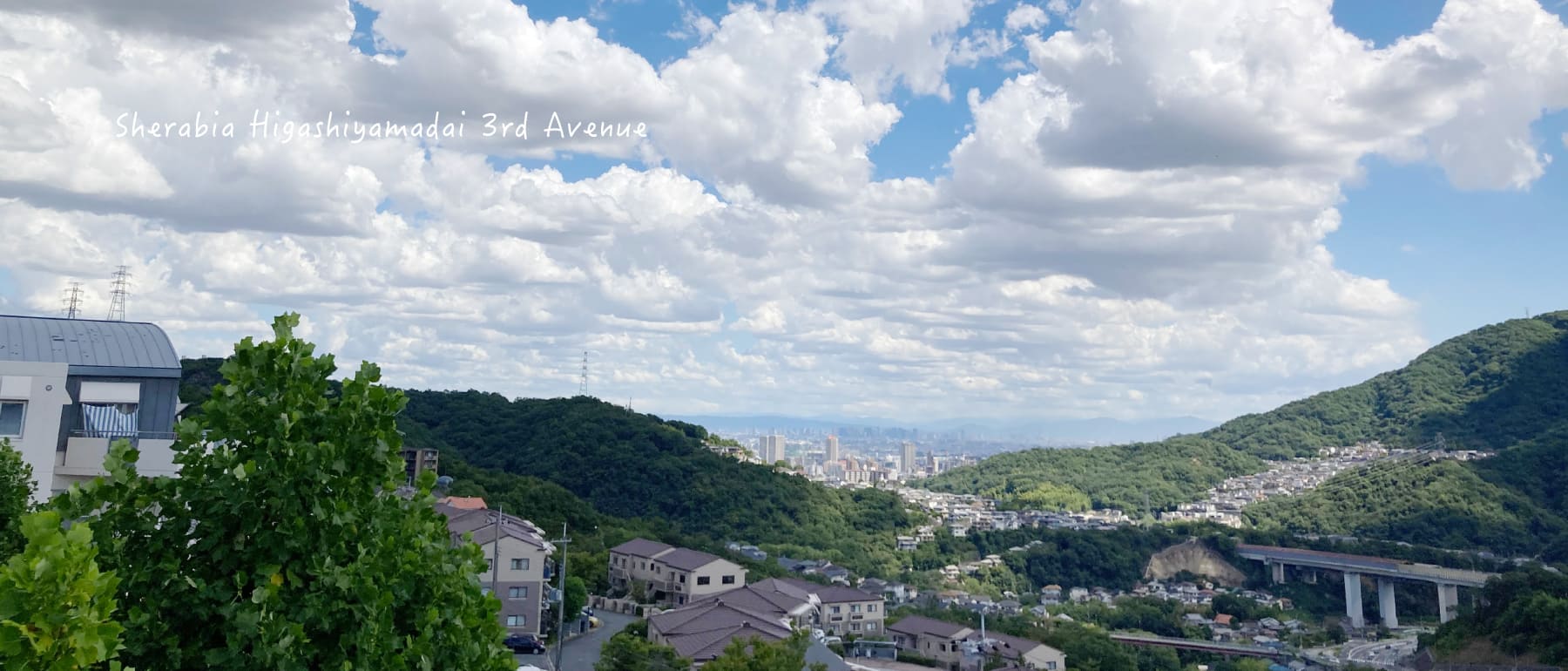 シェラビア東山台3番街は、西宮名塩ニュータウンの中でも象徴的な、白を基調とした美しいデザインが魅力のマンションです。山の斜面を活かした階段状の建築は、まるで地中海の街並みのよう。高台に位置するため、バルコニーからは遮るもののないパノラマビューが広がり、四季折々の美しい山並みを一望できます。
